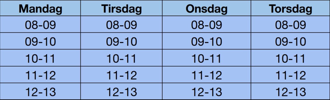 Her oppgir du/dere alle treningstidene under som passer for dere!